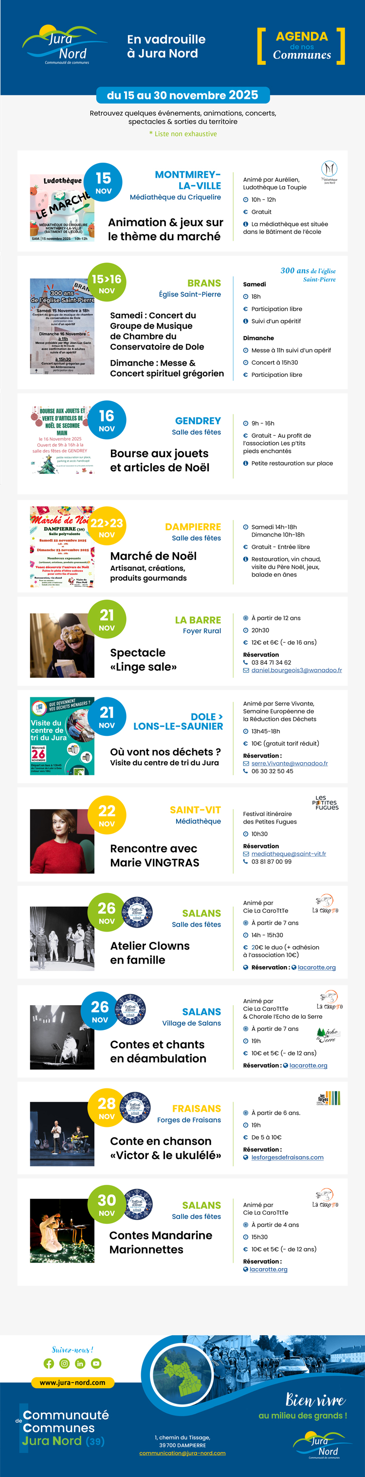 Retrouvez quelques événements, animations, concerts, spectacles & sorties du territoire.