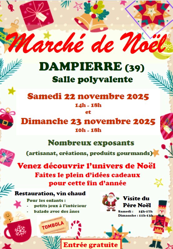 Samedi 14h-18h Dimanche 10h-18h Gratuit - Entrée libre Restauration, vin chaud, visite du Père Noël, jeux, balade en ânes