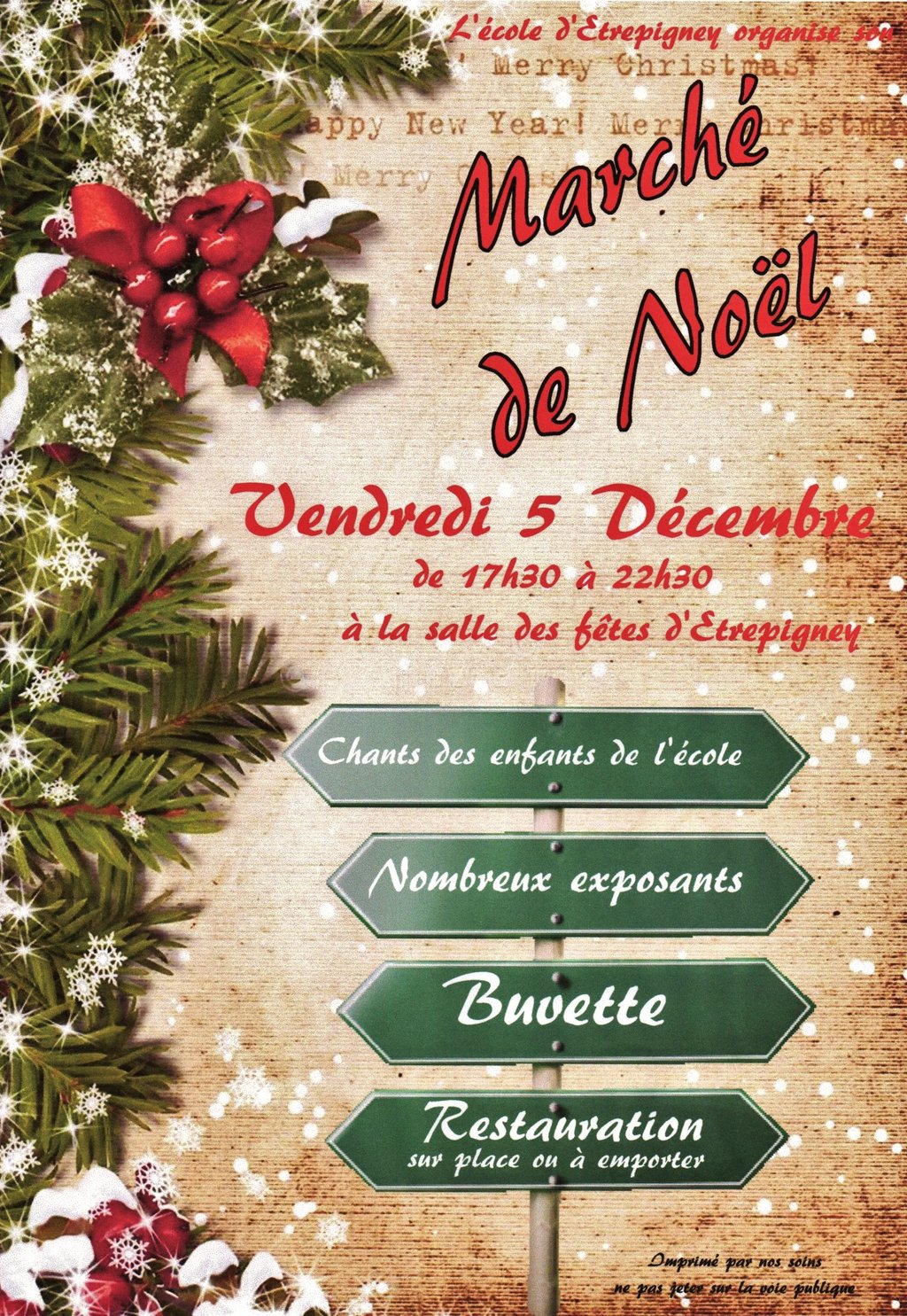 Marché de Noël organisé par l'école d'Etrepigney. Nombreux exposants, chants des enfants, buvette & restauration.