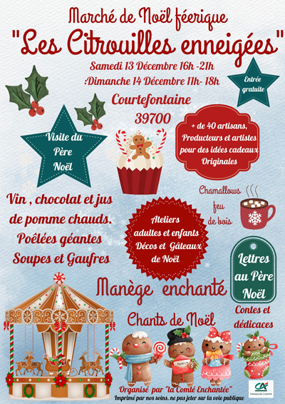 La Comté Enchantée vous proposons un vrai marché de Noël comme autrefois au coeur du charmant village de Courtefontaine 39700, niché au pied de l'église romane, du prieuré et d'un chêne tricentenaire.