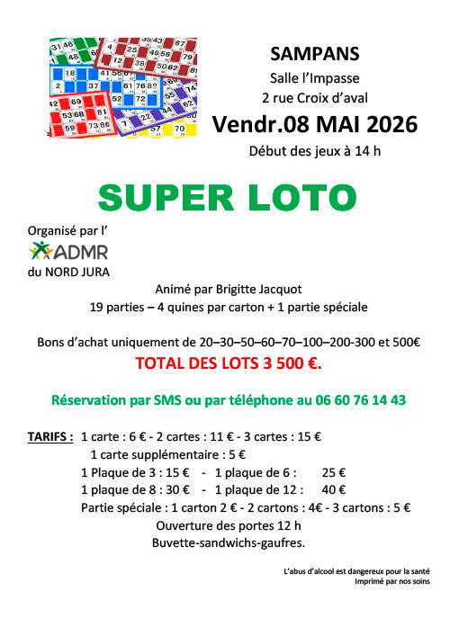 Réservations par SMS ou par téléphone au 06 60 76 14 43.